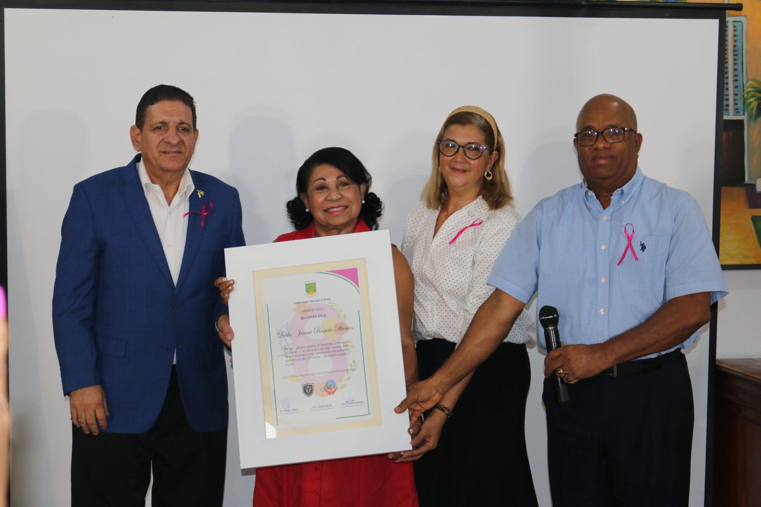 La licenciada Juana Rosario recibió su distinción como empresaria sobresaliente y ejemplar de Bonao.
